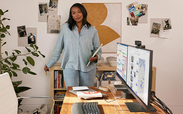 Stilrena skärmar med fokus på bra ljud och bild för lyckade möten. Optimerade för videokonferenser, så att du alltid kan visa upp din bästa sida och ljuva röst.