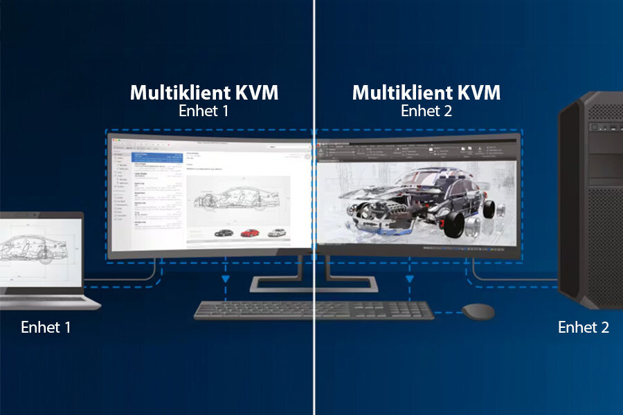 Med en skärm, ett tangentbord och en mus kan du styra två datorer och växla mellan dem med ett knapptryck. Inga omkopplingar av utrustning, ingen omorganisation av skrivbordet, inga avbrott i arbetsflödet.